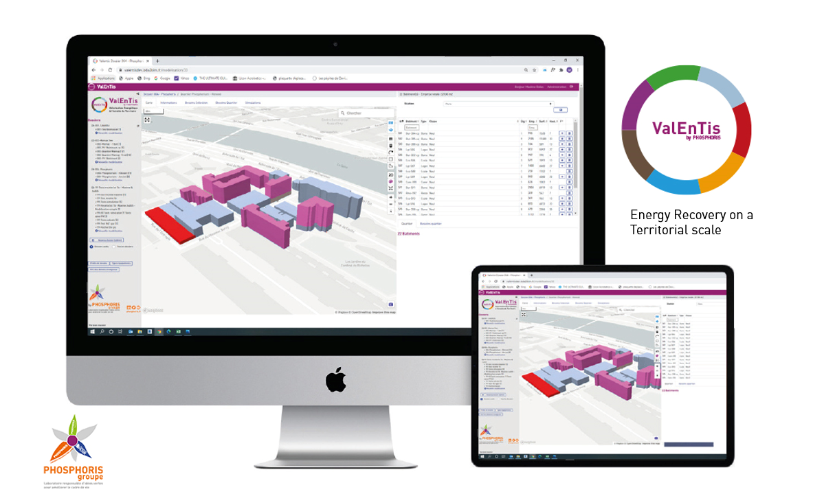 PHOSPORIS has developed the ValEnTis software, which calculates the hourly energy needs of each building and then the overall consumption of the district, based on its expertise in dynamic thermal simulation (DST). It is then possible to set up energy loops to balance heating and cooling needs between buildings or to pool electricity production, for example. From a new or existing territory, ValEnTis allows to :