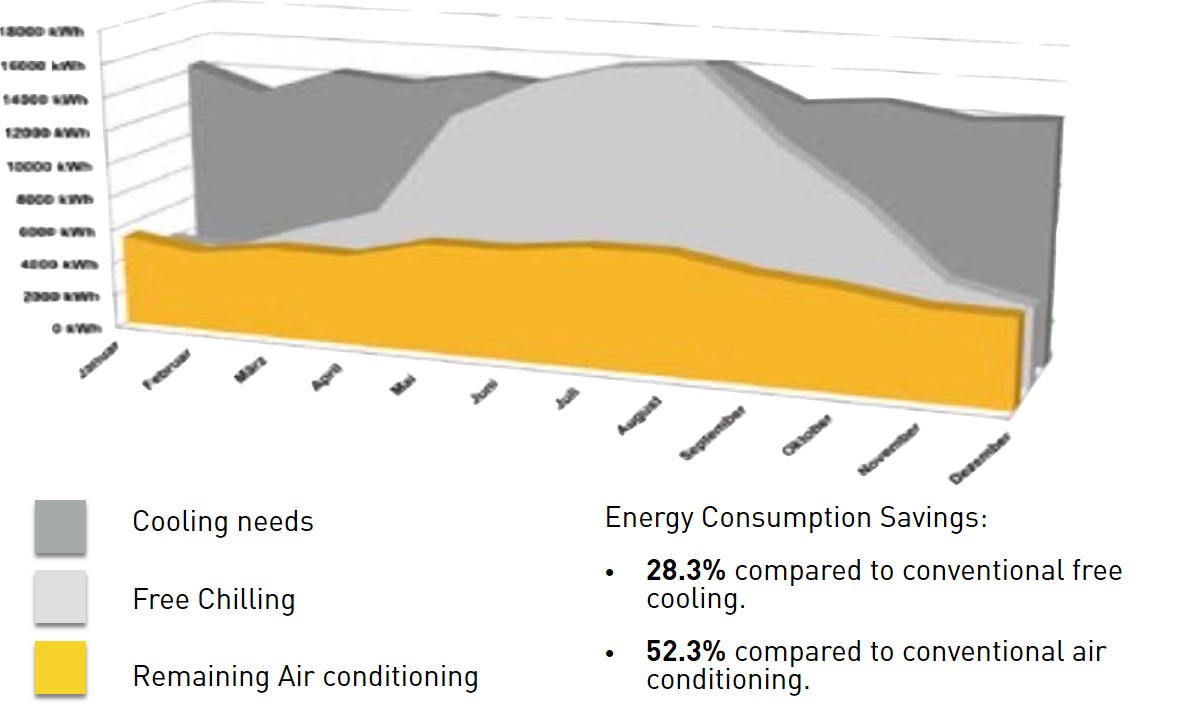 The increase in the overall temperature of the room is also an opportunity for free-chilling, a concept of natural air conditioning based on the temperature difference inside / outside.