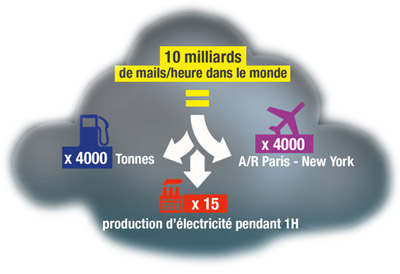 Représentation de la pollution créée pour l’envoi et le stockage de mails.