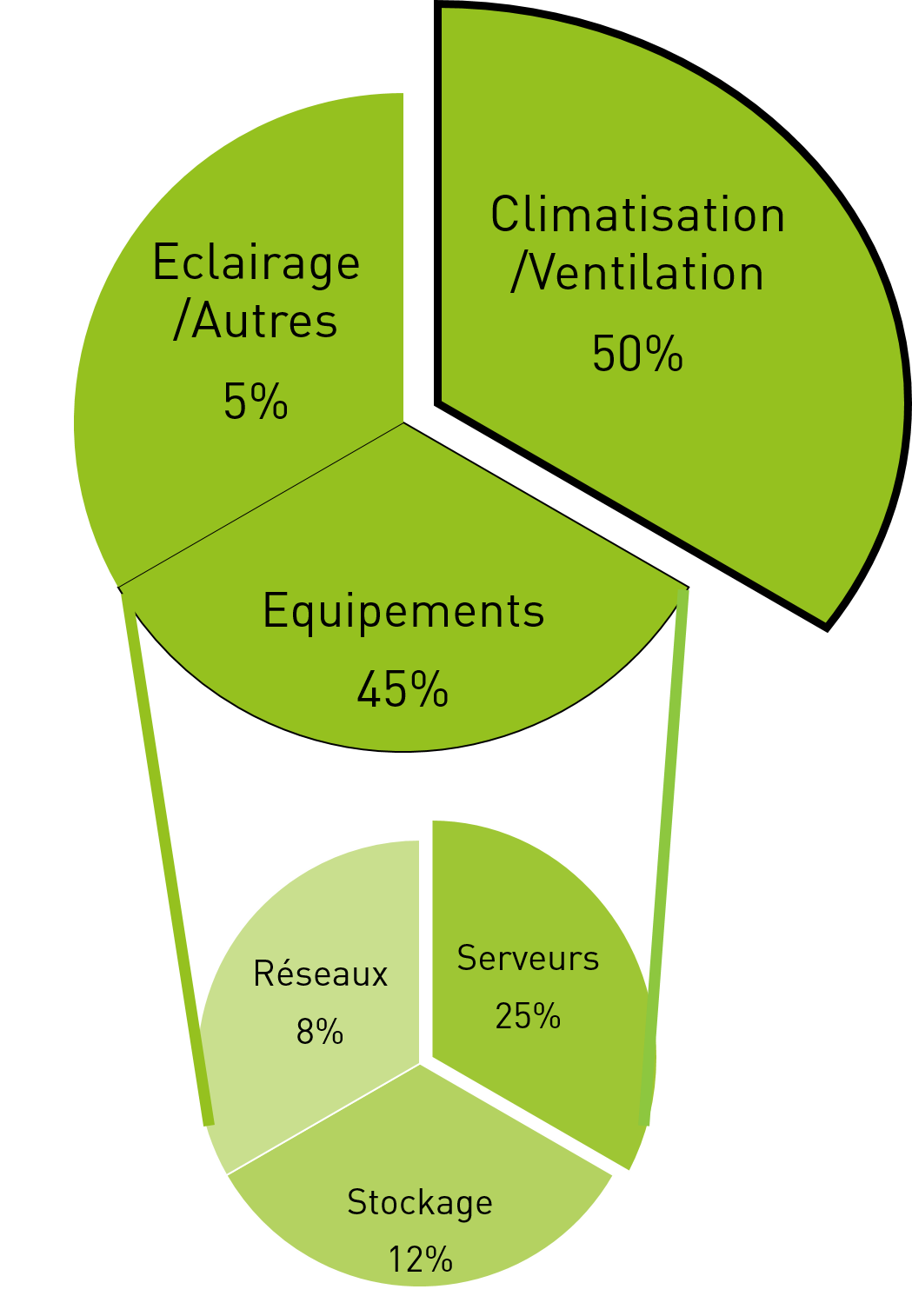 Répartition des consommations électriques d’un Data Center par catégorie.