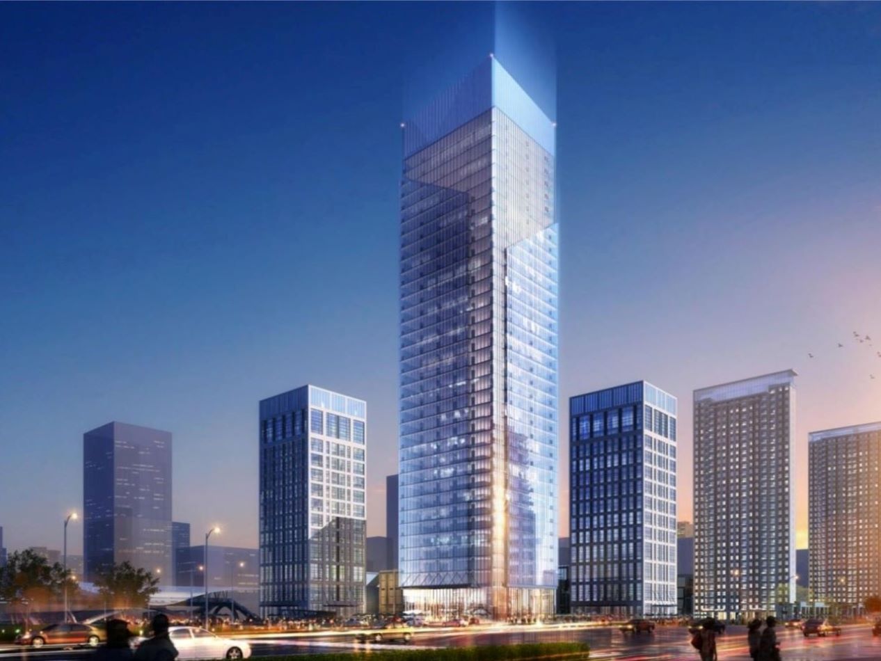 Situé dans la ville de Wuhan, le projet consiste à créer un immeuble qui accueillera des bureaux et des commerces. Le bâtiment devrait mesurer 150 m de haut, comprendre 30 étages ainsi que 3 étages souterrains. L’immeuble est situé dans l’écoquartier franco-chinois, il fait partie d’un quartier commercial-résidentiel en partageant les sous-sol avec autres ilots.