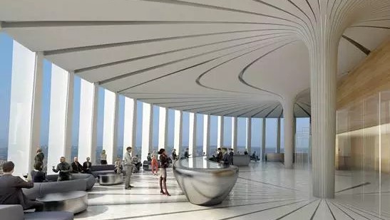 Le projet inclut également un bâtiment socle au centre duquel se dresse la tour, avec un étage sous-sol et deux étages sur sol, à usage public, comprenant un centre multidisciplinaire, des restaurants, un spa et une piscine.